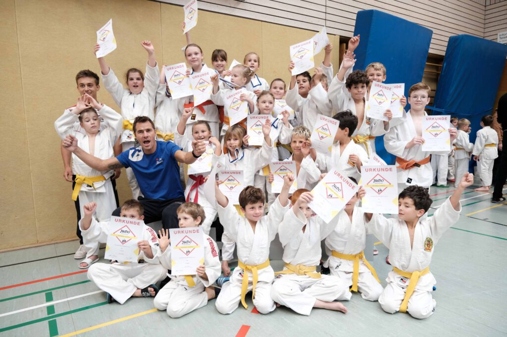 Wie kann mein Kind mit Judo starten? Am Montag kann von 14.30 – 15.30 Uhr (3 und 4 Jahre) oder 15.30 – 16.30 Uhr (5 und 6 Jahre) jederzeit in ein Anfängertraining bei Martina Hanke (5. Dan Judo, Trainerin C) und Karin Paulik eingestiegen werden. Am Dienstag findet von 17 – 18.15 Uhr ein Anfängertraining bei Peter Graf (3. Dan Judo, Trainer C) statt. Am Donnerstag findet von 17 – 18.30 Uhr ein Anfängertraining bei Heike Barth (4. Dan Judo, Trainerin B) statt. Regelmäßig bieten wir Anfängerkurse an!(Übersicht Trainingszeiten) |