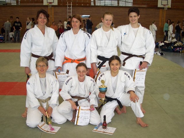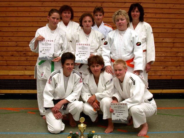 hinten: Karin William (JC Bietigheim), Trainerin Martina Hanke, Heike Barth, Alina Böhm, Theresa Geller,