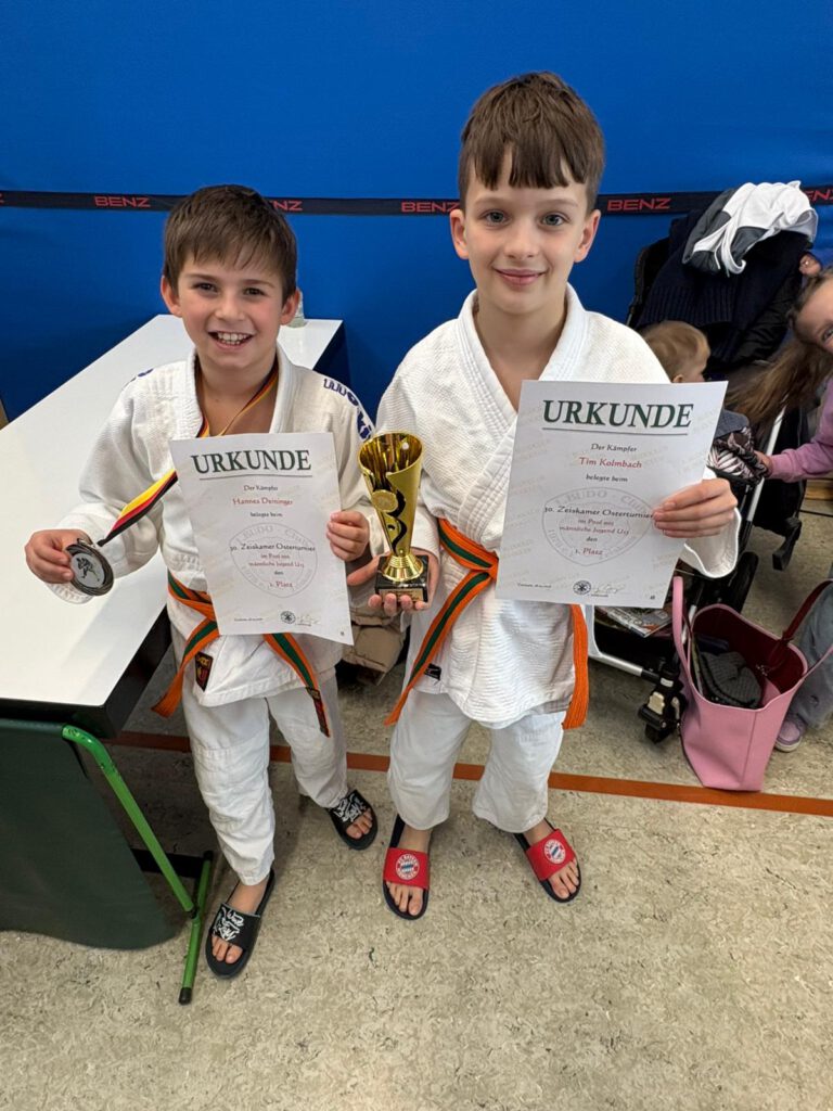 Erfolgreich starteten die Heubacher Nachwuchsjudokids beim Osterhasencup in Kirchberg. 24 Starter holten insgesamt 10 erste Plätze. Am Ende reichte es in der Teamwertung für einen starken dritten Platz. Ein tolles Turnier für Einsteiger und Judoka, die den Anschluss in der U13 schaffen wollten.
